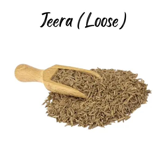 Jeera (Cumin Seed) Loose is a prominent spice blend used in many Indian cuisines. It consists of cumin seeds mixed with fennel seeds, coriander seeds, cloves, cardamom, and cinnamon. This blend imparts a deep and aromatic flavor to dishes.